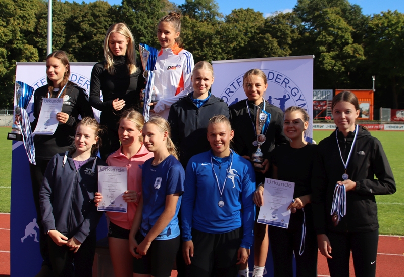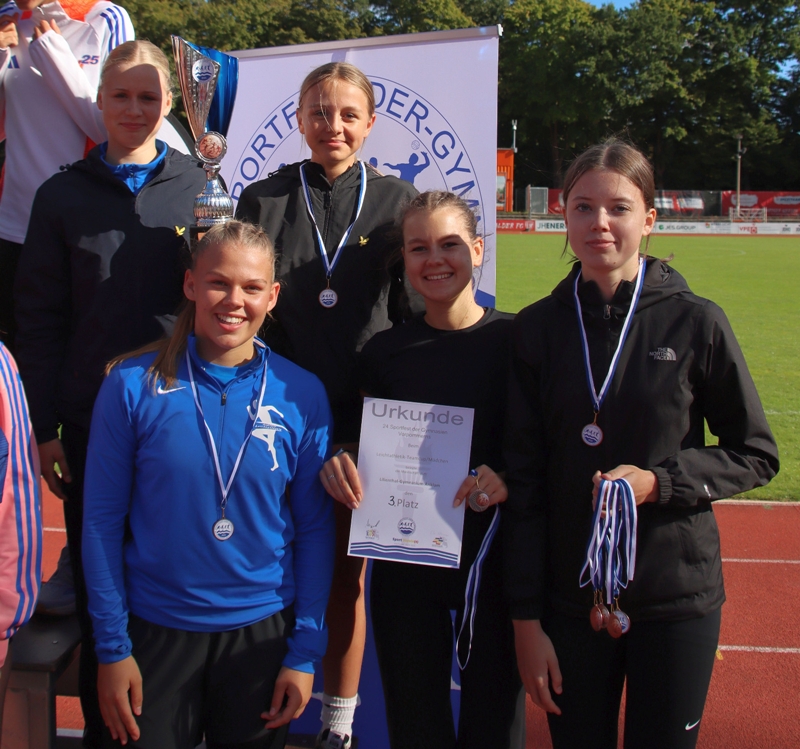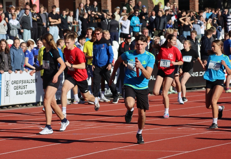 Mit großem Einsatz, Ehrgeiz und Teamgeist hat sich unser Lilienthal-Gymnasium am 24. September 2025 beim Sportfest der Gymnasien Vorpommerns in Greifswald präsentiert. 14 Schulen mit rund 650 Schülerinnen und Schülern gingen in den Disziplinen Leichtathletik, 3×3-Basketball, Fußball und Volleyball an den Start – und mittendrin rund 50 sportbegeisterte Jugendliche aus unserer Schule. Das Ziel von Sportlehrer Andreas Teige war es, einen Platz unter den ersten sechs zu erreichen. Am Ende belegte unsere Auswahl Rang neun in der Gesamtwertung – ein Ergebnis, das in erster Linie die starke Konkurrenz widerspiegelt. Für ein Highlight sorgte Sophie Riebe, die über 100 Meter alle Konkurrentinnen hinter sich ließ und Platz eins erreichte. Sie hatte damit maßgeblichen Anteil daran, dass in der Leichtathletik-Mannschaftswertung der Mädchen ein beachtlicher dritter Platz heraussprang. In den Teamwettbewerben zeigten unsere Schüler ebenfalls vollen Einsatz. Auch wenn beim 3×3-Basketball, Fußball und Volleyball keine Spitzenplatzierungen heraussprangen, überzeugten sie durch ihre geschlossene Mannschaftsleistung. „Unsere Starter haben gute Leistungen gezeigt und sich mit großem Einsatz präsentiert. Das stimmt uns positiv für die Zukunft“, bilanzierte Andreas Teige. Das Sportfest, das in Greifswald in einer beeindruckenden Kulisse stattfand, bot nicht nur sportliche Höchstleistungen, sondern vor allem Teamgeist und Zusammenhalt. Für unsere Schule ist es gleichzeitig Motivation, im kommenden Jahr beim 25. Jubiläum des Sportfestes erneut anzugreifen und sich noch stärker zu präsentieren.