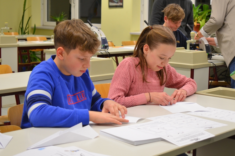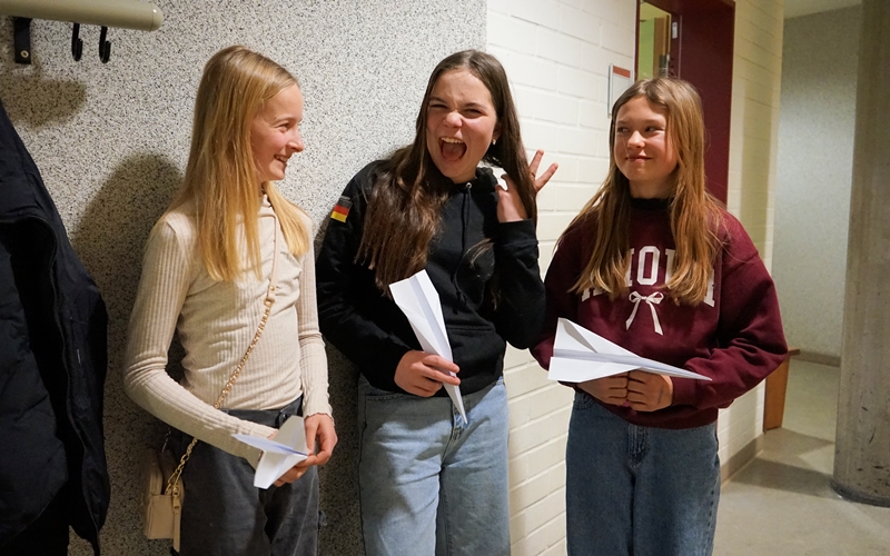 Beim Abend der offenen Tür am 03.02.26 hieß unsere Schule die zukünftigen Schüler der 7. Klassen willkommen. Während die Eltern einige wichtige Informationen zur Organisation in der Aula hörten, konnten die Schüler die Räumlichkeiten des Schulgebäudes erkunden und ein Blick in die Arbeit einiger Fachschaften werfen. Sie konnten bei den Naturwissenschaften etwas experimentieren, sich in Französisch und Russisch ausprobieren, moderne Kunst interpretieren, Tanzschritte einüben und einige sogar am Schlagzeug, Keyboard und E-Gitarre musizieren. Natürlich konnten wir den Abend nicht ohne den Papierflugzeugwettbewerb ausklingen lassen, schließlich ist die Schule nach den berühmten Brüdern Lilienthal benannt. Das hat sichtlich Spaß gemacht! Ich bedanke mich herzlich für die vielen lachenden Gesichter der ,,Neuen“. Ihr habt toll mitgemacht! Bis bald bei uns am Lilienthal-Gymnasium!