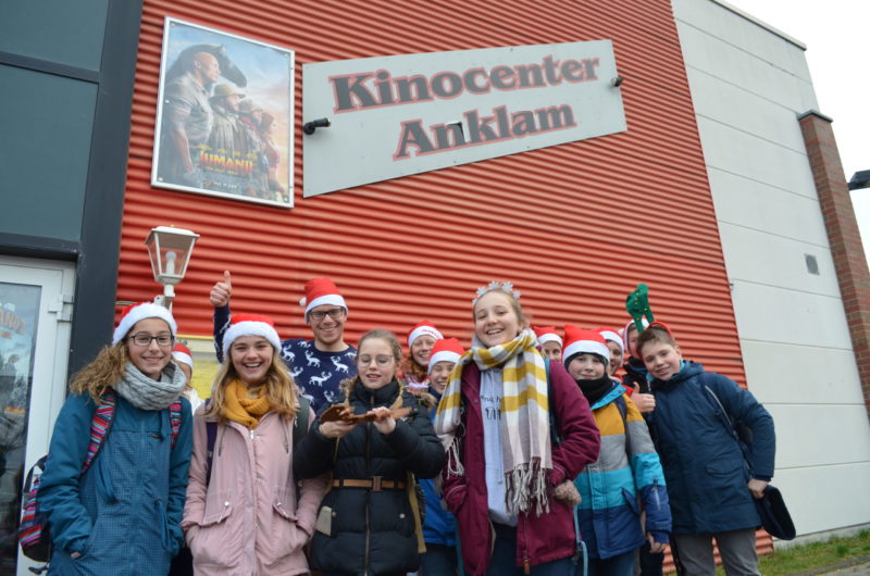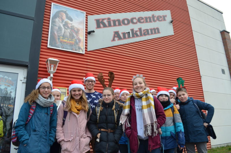 Ausgelassene Stimmung gestern im Kino-Center Anklam. Dieses Jahr organisierte ich eine Weihnachtsfeier auch in meinem eigenen Interesse. Ich bin Fan von Weihnachtsfilmen, George Michael und außerdem (verständlicherweise) anglophil. So rief ich im Kino an und fragte, ob sie für uns eine Sondervorführung auf Englisch organisieren würden – mit deutschen Untertiteln. Damit es sich lohnen würde, habe ich auch in den anderen 7. und 8. Klassen nachgefragt, ob sie nicht Lust hätten, auch ein Teil der Klasse 9 b war von der Idee begeistert. Wir organisierten 100 Mal Popcorn und 100 Mal Getränke, damit wir nicht ewig anstehen mussten. Alles wurde im Voraus bezahlt. Da ich mir den Film schon am Dienstag angeschaut habe, wusste ich, dass das Lied ,,Heal the Pain“ von George Michael für ein besseres Verständnis des Filmes sorgen würde. Kurzfristig änderte ich meinen Unterrichtsplan, so dass wir übersetzen und singen konnten. Wir reflektierten über den Schmerz von Menschen (nicht nur in der Weihnachtszeit) und über unsere eigene Bereitschaft und Kraft, andere zu lieben, schützen und respektieren, aber auch UNS SELBST: ,,Be good to yourself, cause nobody else has the power to make you happy“. Außerdem sind die ,,Do, doo, do, doos“ im Lied einfach herrlich! Ich habe mich über jede einzelne Stimme im Kino gefreut, die während des Films nachher leise mitgesummt hat.