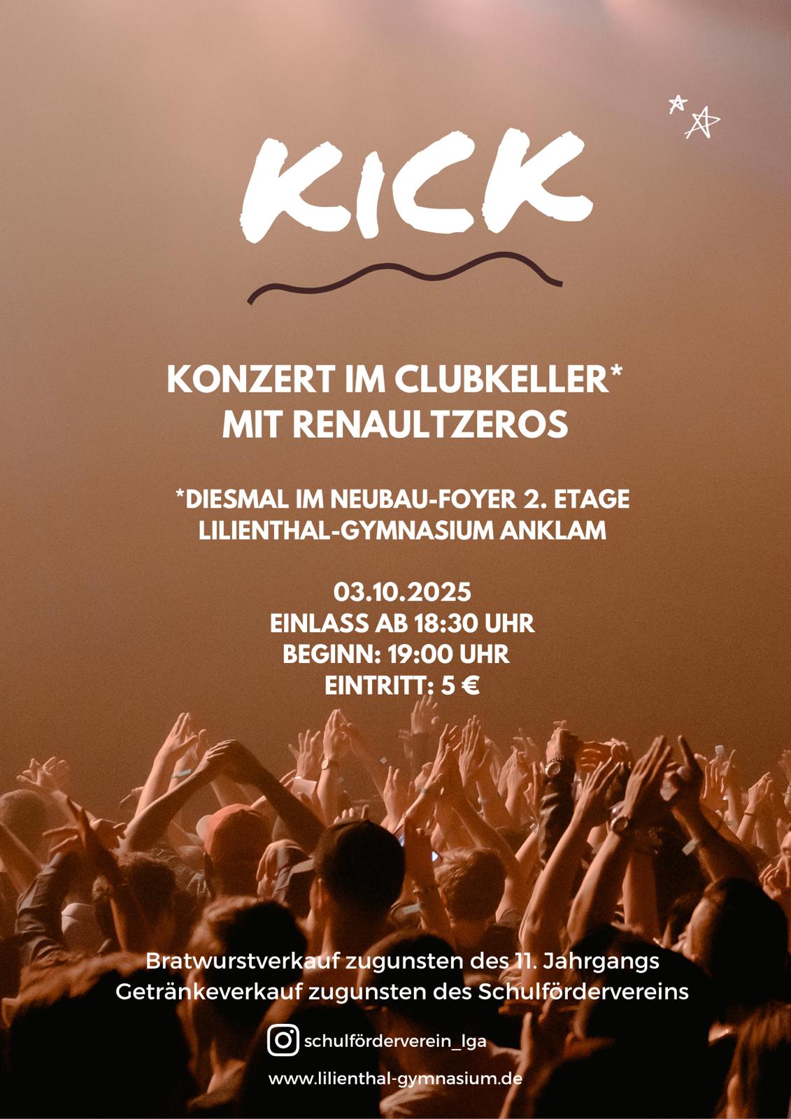 Morgen wollen wir die Feierlichkeiten mit dem KiCK eröffnen. Einlass für die ,,Renaultzeros“ ist ab 18:30 Uhr im Neubau-Foyer. Für das leibliche Wohl wird gesorgt. Eintritt: 5€.